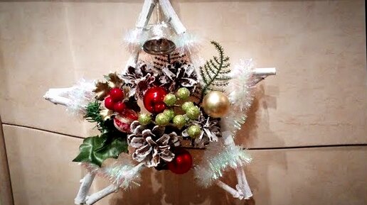Новогодние поделки. Панно на дверь или стену "Звезда". Новогодний декор своими руками.