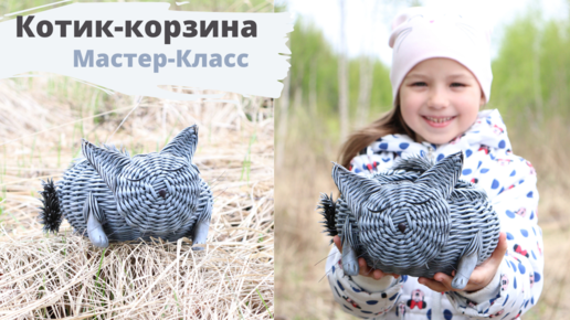 Плетеный кот корзина | Плетение из бумажных трубочек | Плетение + Лепка