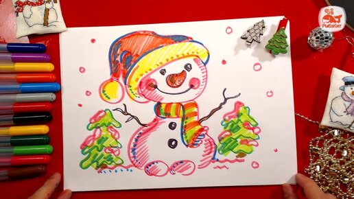 Рисунки для детей - просто рисуем фломастерами снеговичка