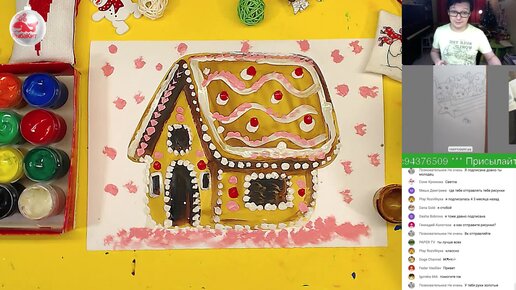 Как нарисовать Пряничный домик - рисуем красками