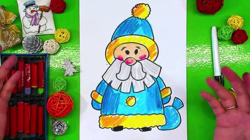 Рисование для детей - Милый синий Дед Мороз