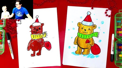 Мишка на Роджество - уроки рисования для детей