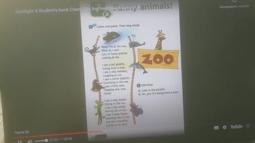 Spotlight 4 Student's Book Module 4 стр. 58 Песенка Забавные животные Зоопарк