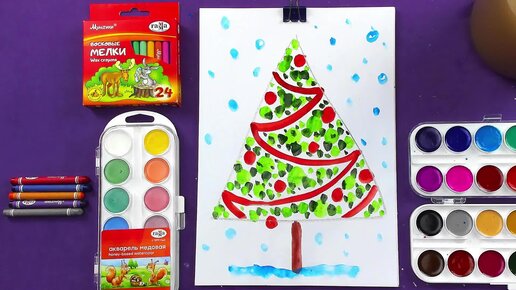 Рисуем Новый год - открытка с Елочкой красками