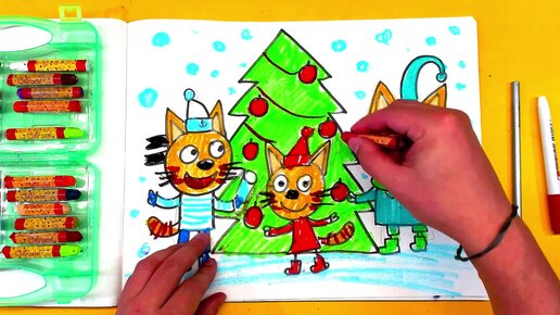 Три Кота - мы рисуем Новый год и Ёлку - уроки рисования
