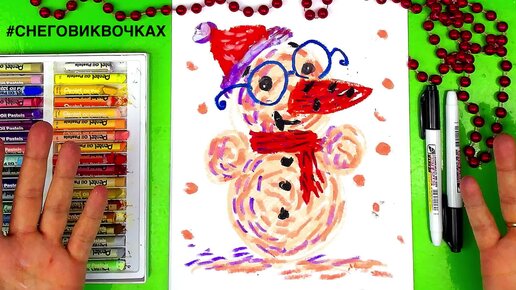 Рисунки для детей красками гуашь - Новый год - снеговик