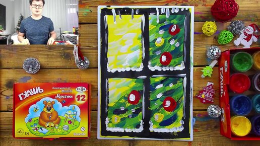 Урок рисования для детей Окно на Рождество или Новый год