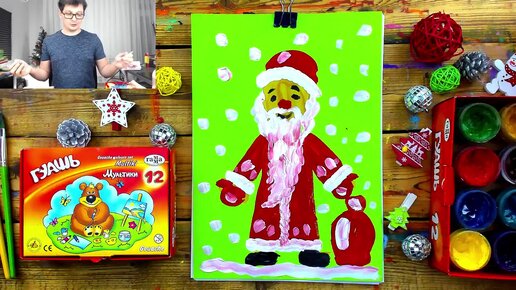 Как нарисовать Деда Мороза красками - учимся рисовать