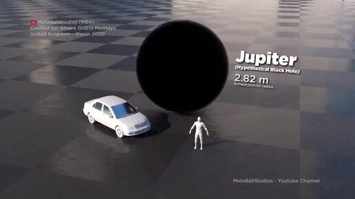 Сравнительные размеры известных чёрных дыр и объектов Солнечной системы.