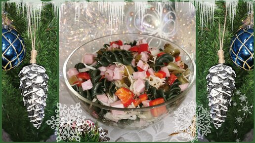 Новогоднее меню 2023. САЛАТ с черными МАКАРОНАМИ и ветчиной.