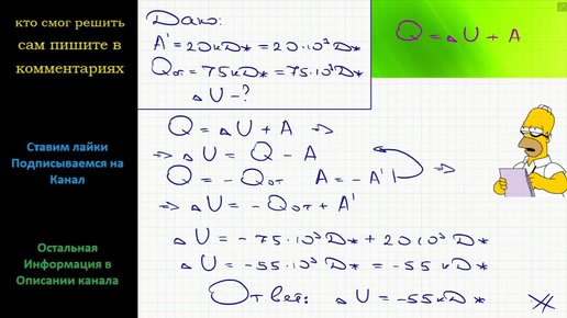 Физика На сколько изменилась внутренняя энергия газа, над которым совершили работу 20 кДж, если он отдал количество теплоты 75 кДж?