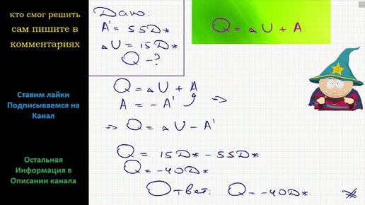 Физика Над газом была совершена работа 55 Дж, при этом его внутренняя энергия увеличилась на 15 Дж. Получил или отдал тепло газ в этом
