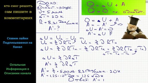Физика При адиабатическом сжатии 5 моль одноатомного газа его температура повысилась на 20 К. Какая работа совершена над газом?