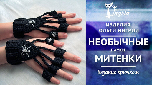 Женские митенки необычной формы Пауки. Вязание крючком на заказ в СПб.