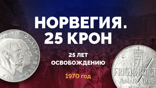 Серебряные 25 крон Норвегии 1970 г. в память 25-летия освобождения от немецкой оккупации