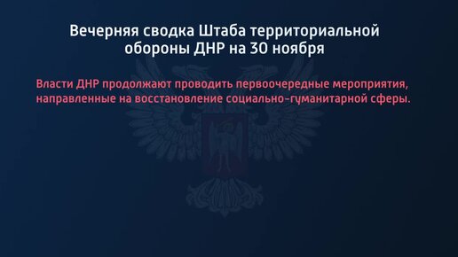 Вечерняя сводка Штаба территориальной обороны ДНР на 30 ноября 2022 года