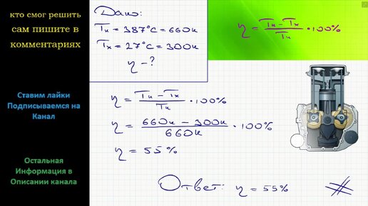 Физика Каков КПД идеальной тепловой машины, Если температура нагревателя 387 С, а температура холодильника 27 С?
