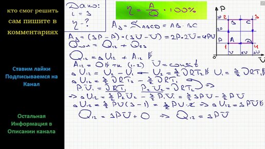 Физика Найдите КПД показанного на рисунке цикла, если рабочее тело – одноатомный идеальный газ