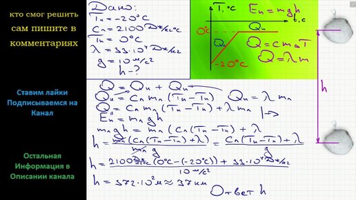 Физика С какой высоты должна свободно падать градинка чтобы при ударе о землю она расплавилась? Температуру в начале падения считайте равно