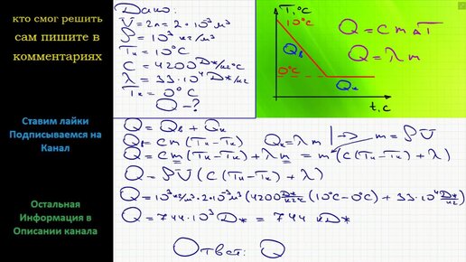 Физика Какое количество теплоты выделится при отвердевании 2 л воды, взятой при температуре 10 С? Изобразите этот процесс на графике