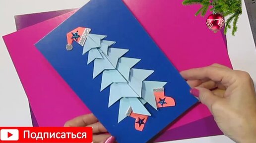 Подарочная открытка с ёлкой на Рождество и Новый год своими руками.Новогодние По