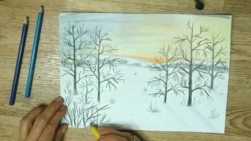ПЕЙЗАЖ. Как нарисовать зимний пейзаж карандашам