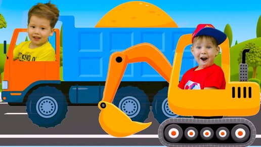 Детская песенка для детей малышей про Машинки Экскаватор Грузовичок и Подъемный кран