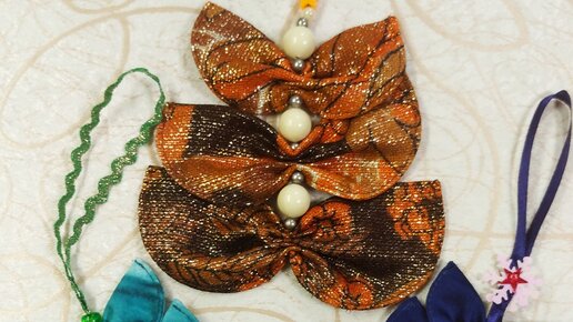 Оригинальные елочные игрушки- текстильные елочки из кружков.