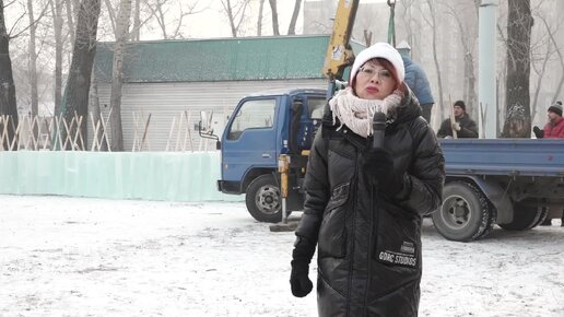 В Черногорский парк привезли лед для строительства городка и горок