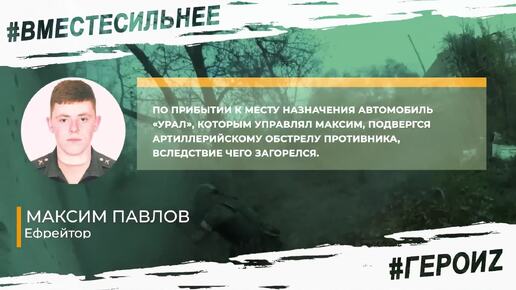 Герои Z: ефрейтор Максим Павлов потушил горящий автомобиль и спас жизни товарищей
