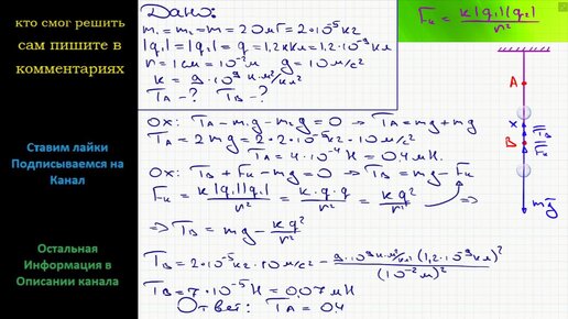 Физика На шелковой нити висят два разноименно заряженных шарика массой по 20мг (см рисунок) Модули зарядов шариков равны 1,2 нКл расстояние