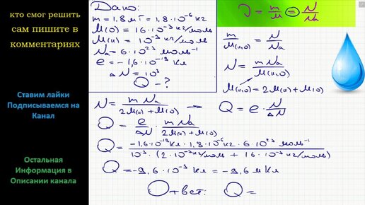 Физика Какой заряд приобрела бы при электризации капелька воды массой 1,8 мг, если бы ей передали один «лишний» электрон на каждую тысячу