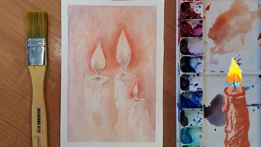 Как нарисовать свечу, огонь акварелью просто. Акварель для начинающих.