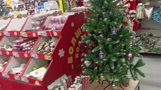 В гипермаркете "Магнит" появились недорогие ёлки и украшения к праздникам.