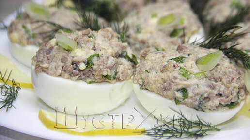 Яйца, фаршированные печенью трески. Прекрасная быстрая закуска, нежная и вкусная.