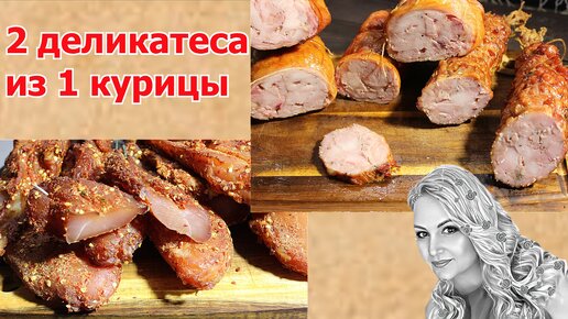 Как без оболочек, без приспособлений и нитритки сделать деликатесы.2 деликатеса из 1 курицы и соли.