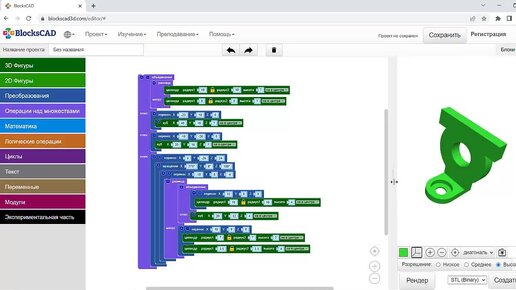 Программирование и моделирование в BlocksCAD. Деталь №6