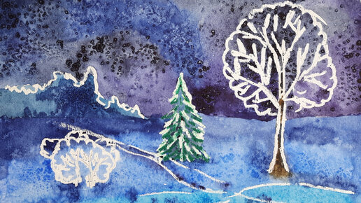 Зимний пейзаж в нетрадиционной технике