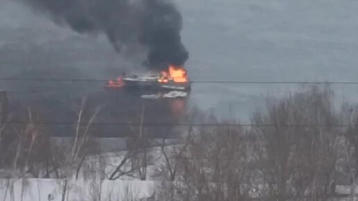 В Москве загорелось пришвартованное судно. Предварительно пострадал один человек.