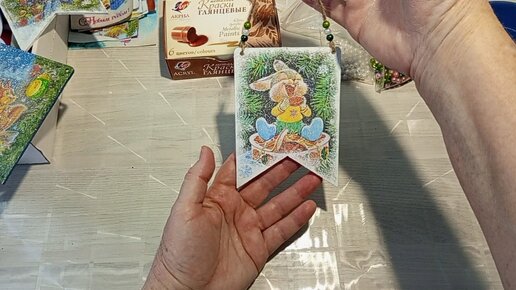 Новогодний флажок на елку, с изображением советской новогодней открытки.