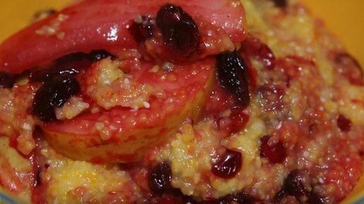 Кукурузная каша с грушей, изюмом и клюквой