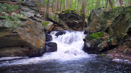 Бушующий водный поток течет через скалы. Белый шум для сна. 1 час фоновое видео.