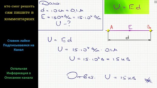 Физика В однородном электрическом поле две точки лежат на одной силовой линии. Расстояние между точками 10 см. Каково напряжение между ними