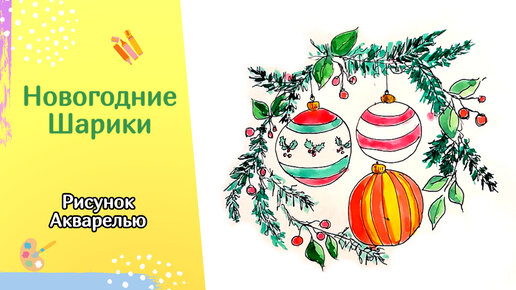 Как нарисовать НОВОГОДНИЕ ШАРИКИ акварелью | Рисунок на Новый Год