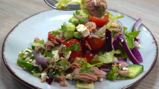 ЭТО ЛУЧШИЙ САЛАТ из тунца с помидорами, огурцами, луком и сладким перцем, который я ела в жизни / ПОСТОЯННО удивляю гостей этим БЛЮДОМ