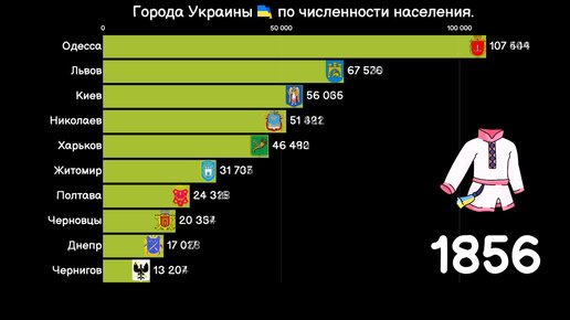 Топ 10 городов на территории Украины по численности населения. (1850-2021)
