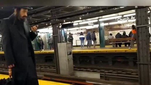 В Нью-Йорке в метро парень бегает по рельсам и чуть не застрял