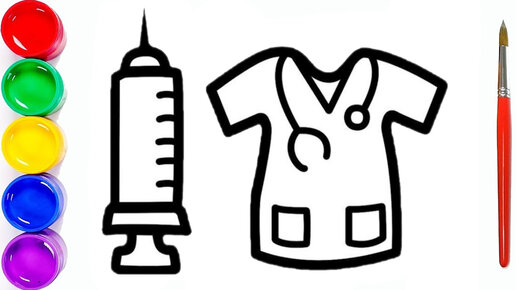 Сборник для детей. Как нарисовать набор доктора. Рисунок и раскраска малышам