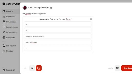 НОВИНКА на Дзене! Теперь в формате поста можно публиковать ОПРОСЫ! Покажу как это делается. Включите звук видео.