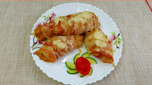 Рецепт люля куриные в беконе с сыром на деревянных шпажках в духовке